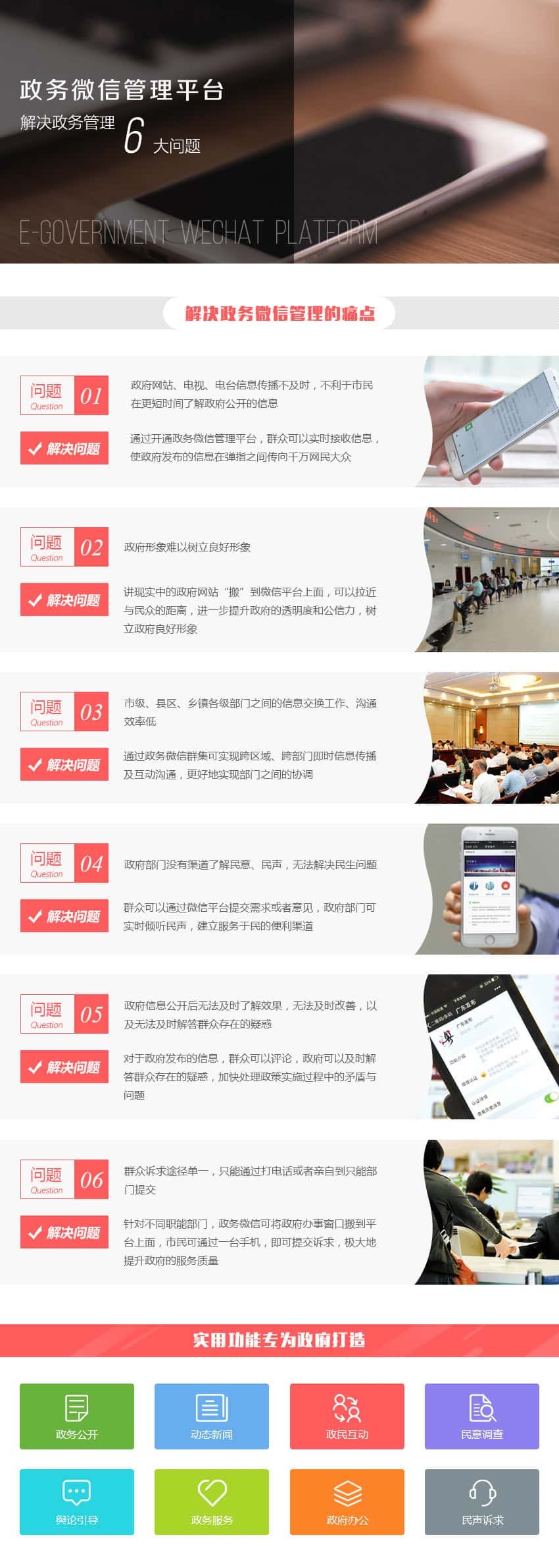 针对不同职能部门,政务微信可将政府办事窗口搬到平台上面,市民可通过一台手机,即可提交诉求,极大地提升政府的服务质量。