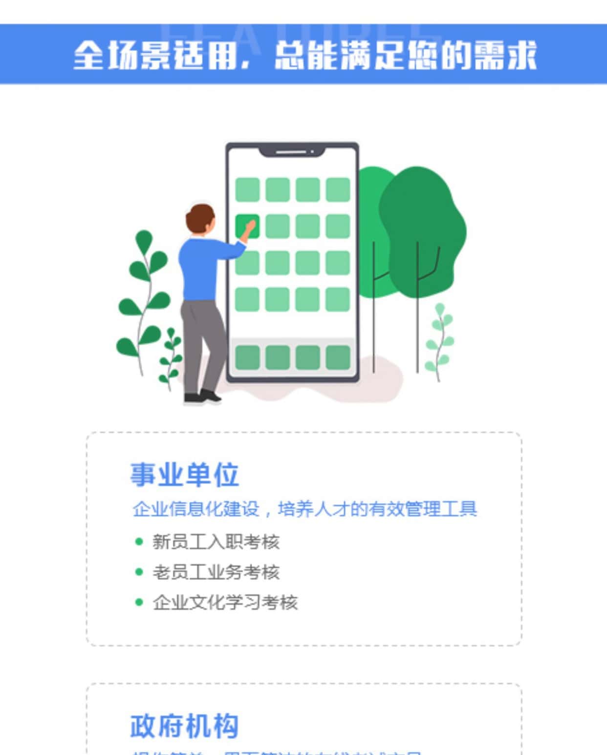 在线考试系统,支持单选、多选、填空、判断、问答、组合题批量试题录入多种组卷方式,试题分类方便查找管理,解决不同行业考试考核的需求,让企业单位考试轻松起来