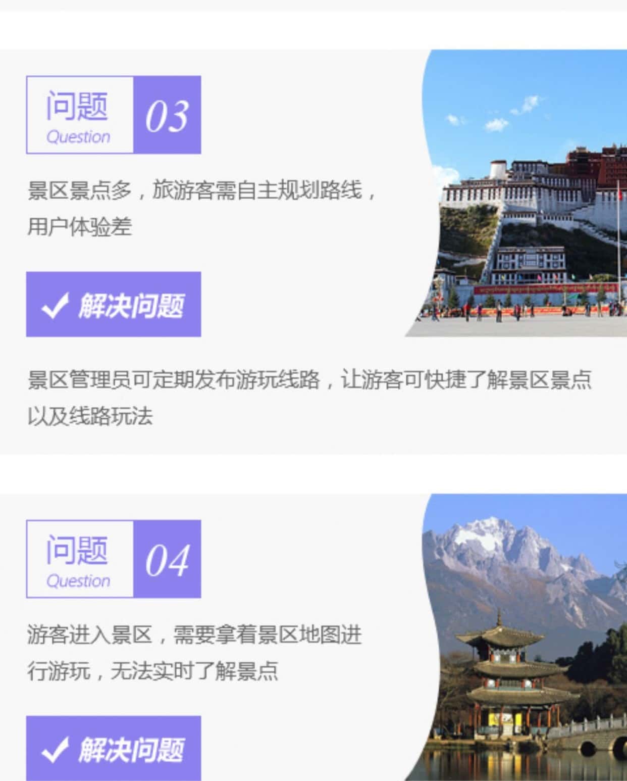 景区景点多,旅游客需自主规划路线用户体验差。景区管理员可定期发布游玩线路,让游客可快捷了解景区景点以及线路玩法。
