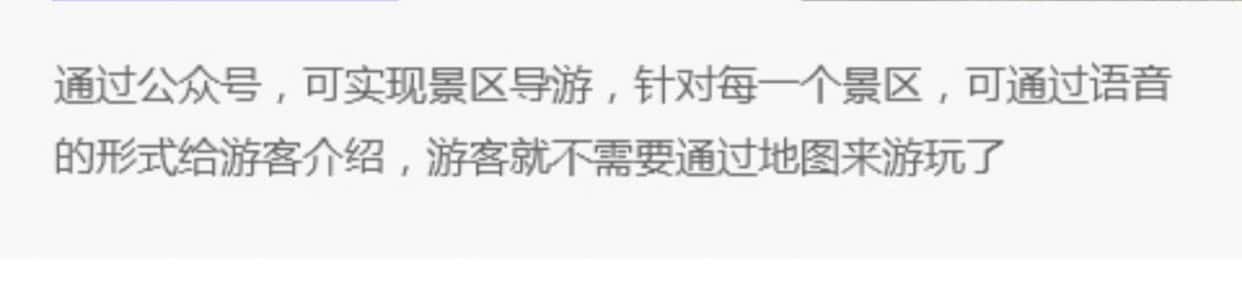 游客进入景区,需要拿着景区地图进行游玩,无法实时了解景点。通过公众号,可实现景区导游,针对每一个景区,可通过语音的形式给游客介绍,游客就不需要通过地图来游玩了。
